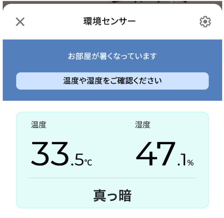 アプリから、照明操作・点灯状態・温度・明るさを確認することができます。