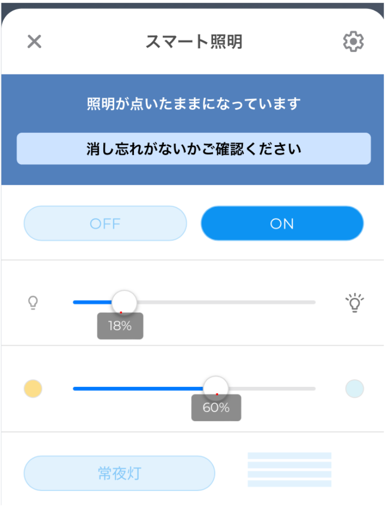 アプリから、照明操作・点灯状態を確認することができます。