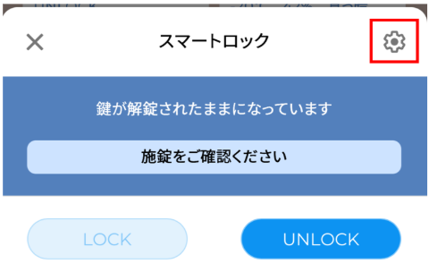 ②操作パネル右上の歯車マークをタップします。