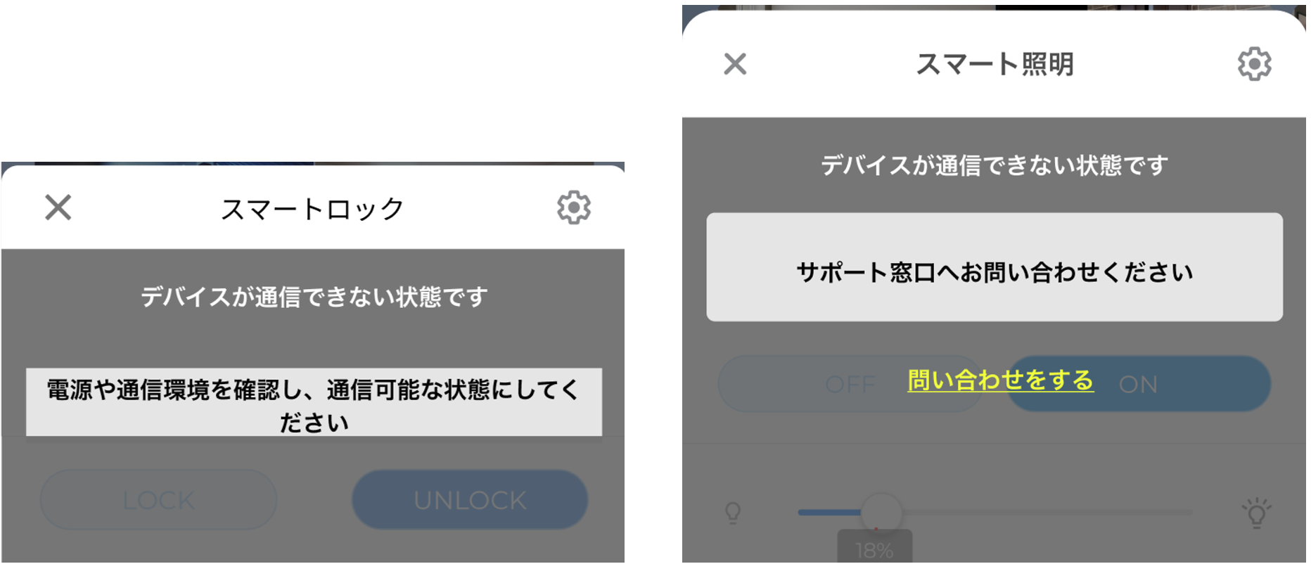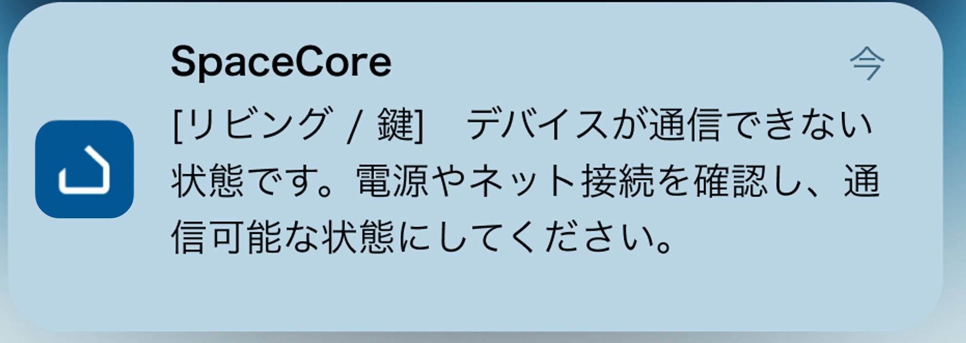 ゲートウェイがオフラインの場合は、スマートホームトップ画面全体に大きくお知らせが表示されます、詳細はこちらをご確認ください。