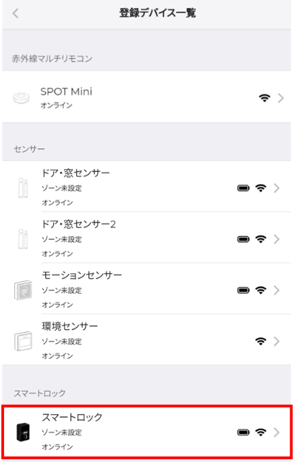4. 登録デバイス一覧画面から、「スマートロック」をタップします。