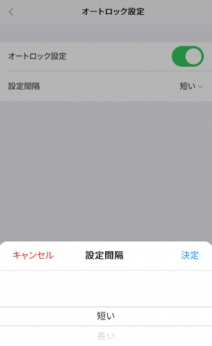 ※設定間隔で「短い」を選択すると15秒後に、「長い」を選択すると30秒後に施錠されます。