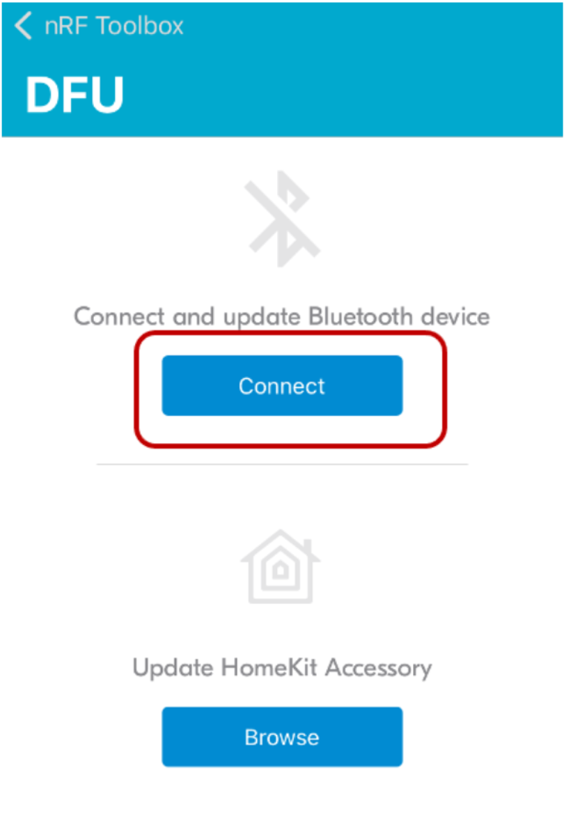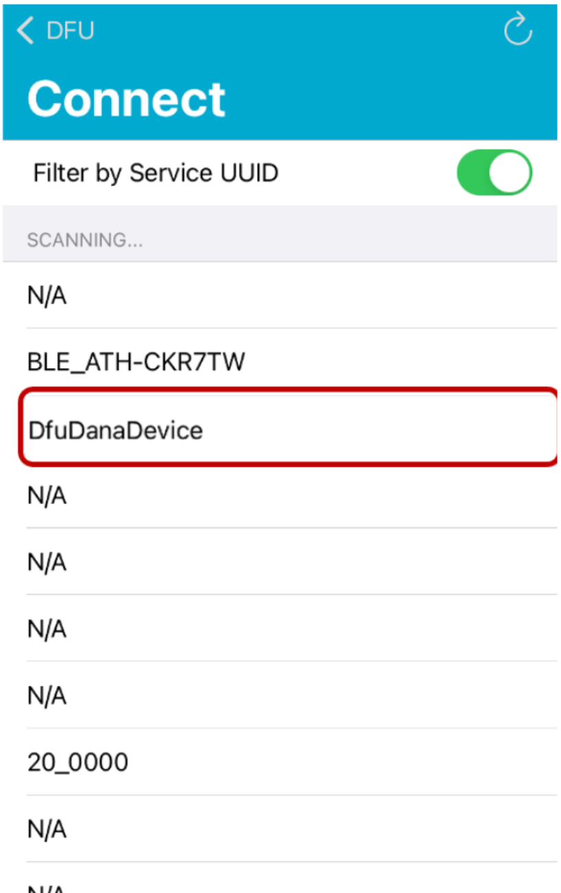 6. Connect画面で、付近のBluetooth情報が表示されますので、カーソルを下げて「Dfu DanaDevice」を探し、タップします。