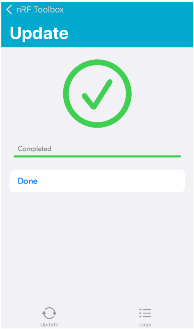 11. 「Done」と表示されたら、ファームウェア更新完了です(DanalockサムターンLEDは消灯状態になります)。
