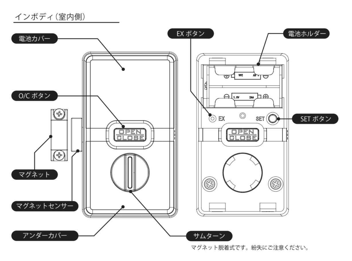・サムターンは、マグネット着脱式につき、紛失にご注意ください(サムターン回しによる空き巣被害を防止する観点で、あえてマグネットにて取れやすい仕様となっております)。