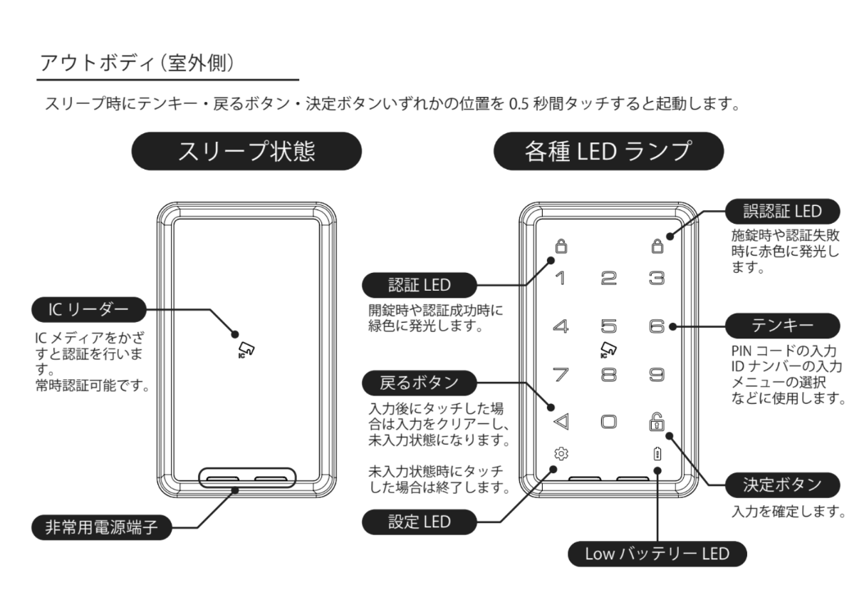 アウトボディ(扉の外側)からの施錠・解錠の操作