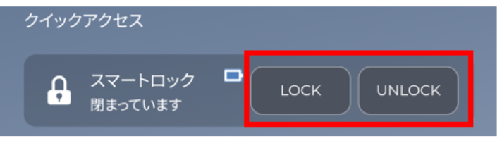 また、クイックアクセスエリアに表示されているスマートロックのパネルから、直接施錠・解錠の操作をすることができます。