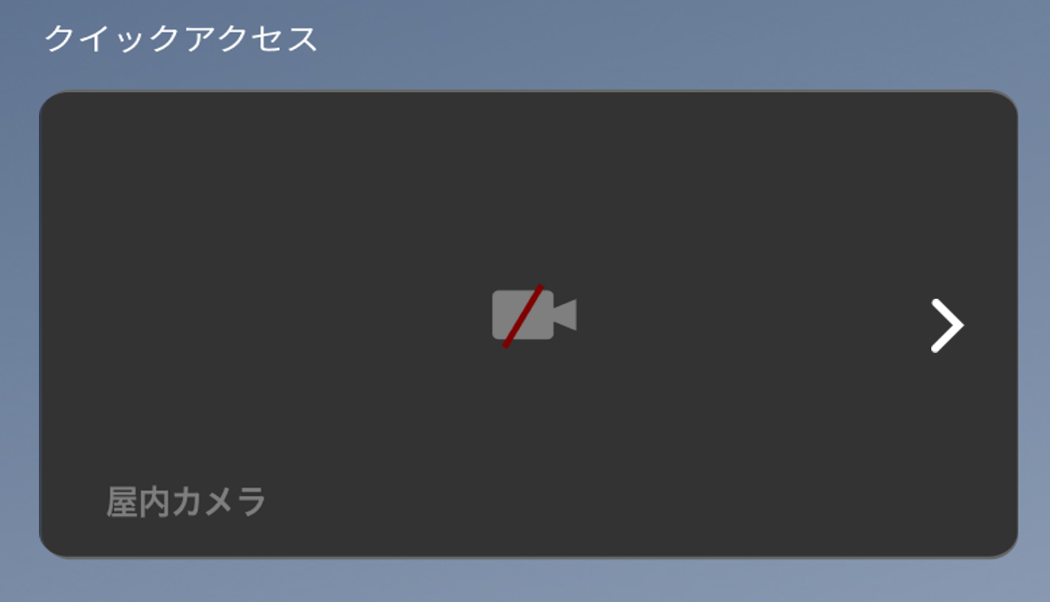 ①スマートホーム画面を開き、クイックアクセスに表示されている屋内カメラパネルの「>」をタップします。