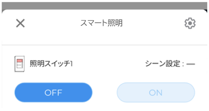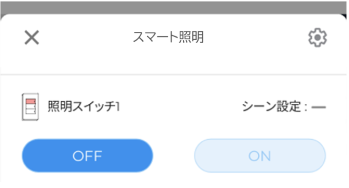 Polar Switchのパネルで、照明のON/OFF状態を確認することができます。また、Polar Switchのパネルタップ後の画面にて、照明スイッチのON/OFF操作を行うことができます。