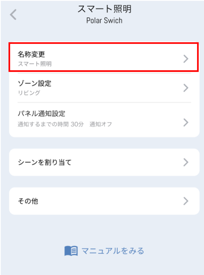 本設定で変更したデバイス名は、パネル名・登録デバイス一覧の名称に反映されます。また、スイッチ名も編集することができます。