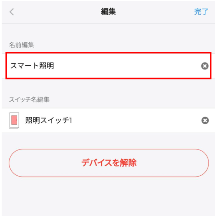 「編集」画面で、「名称変更」をタップすると、デバイス名の編集が可能です。お好きな名前に変更いただけます。