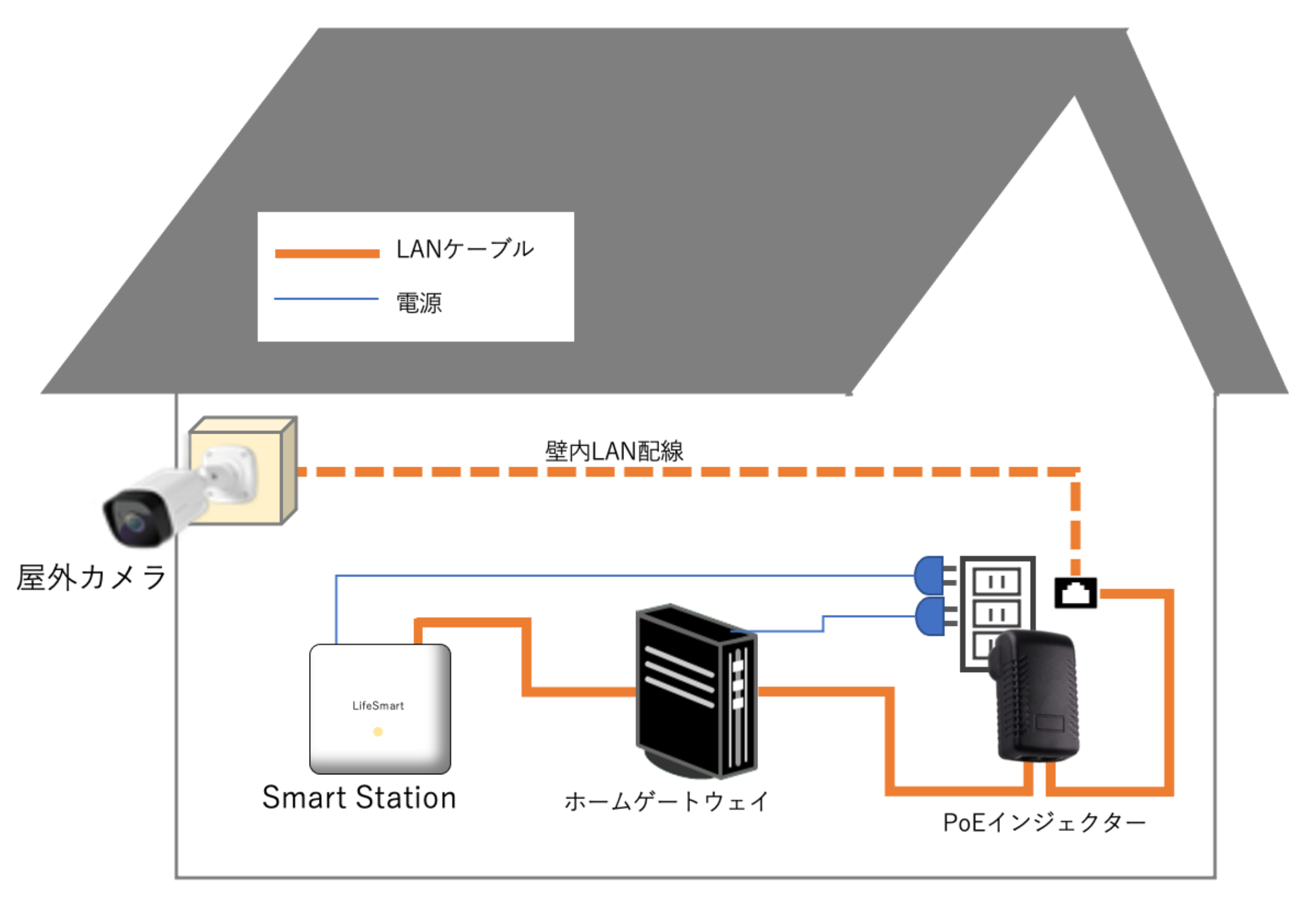 屋外カメラ(Outdoor Camera)をPoE接続にて配線する方法について、説明します。