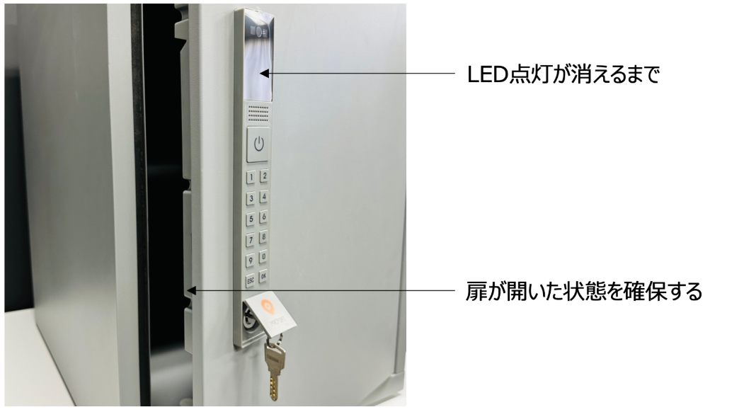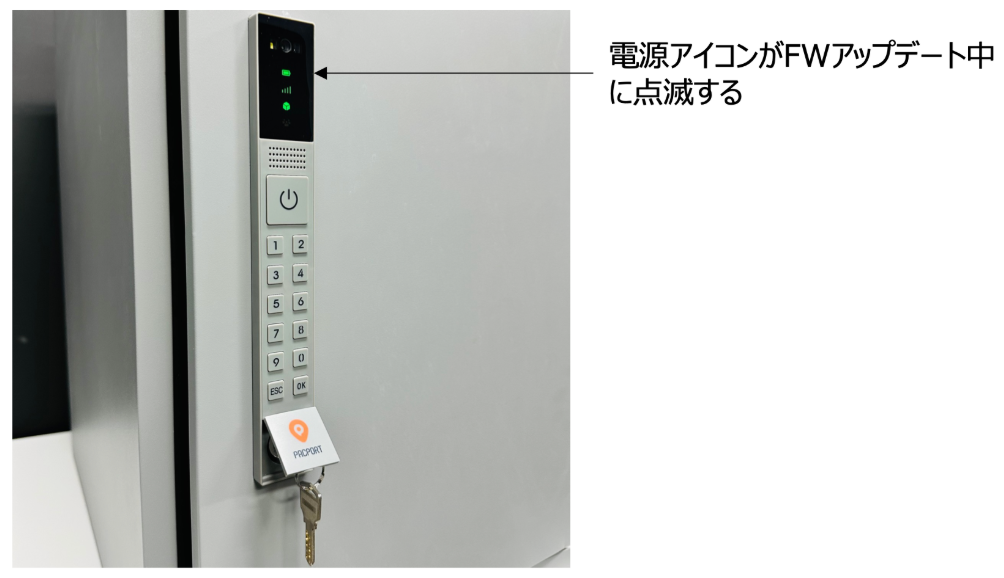 その後、自動でデバイスが再起動(LEDが全て消灯し、もう一度点灯)しますと、 ファームウェアのアップデートが完了しますので、宅配ボックスの扉を閉じてください。