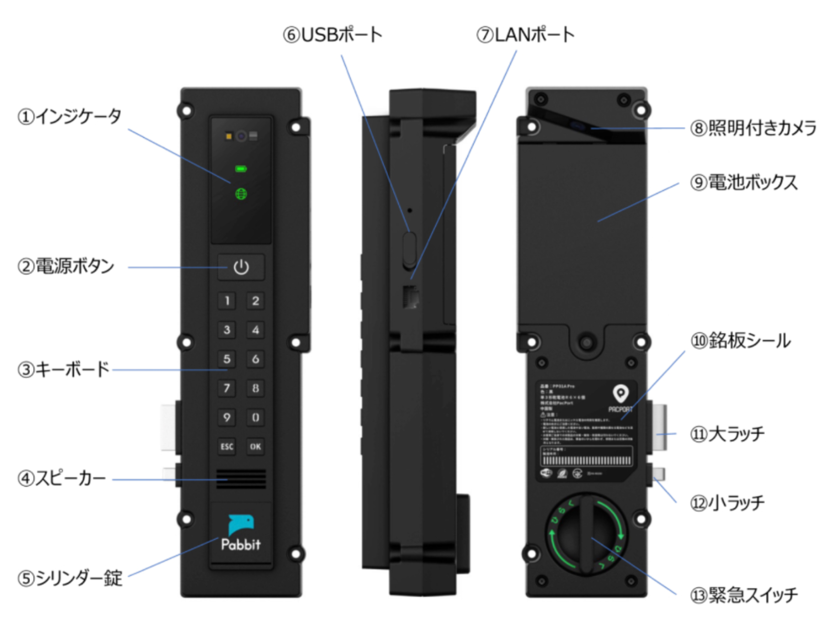 宅配ボックス専用スマートロック(型式PP01A Pro)に関する仕様について説明します。