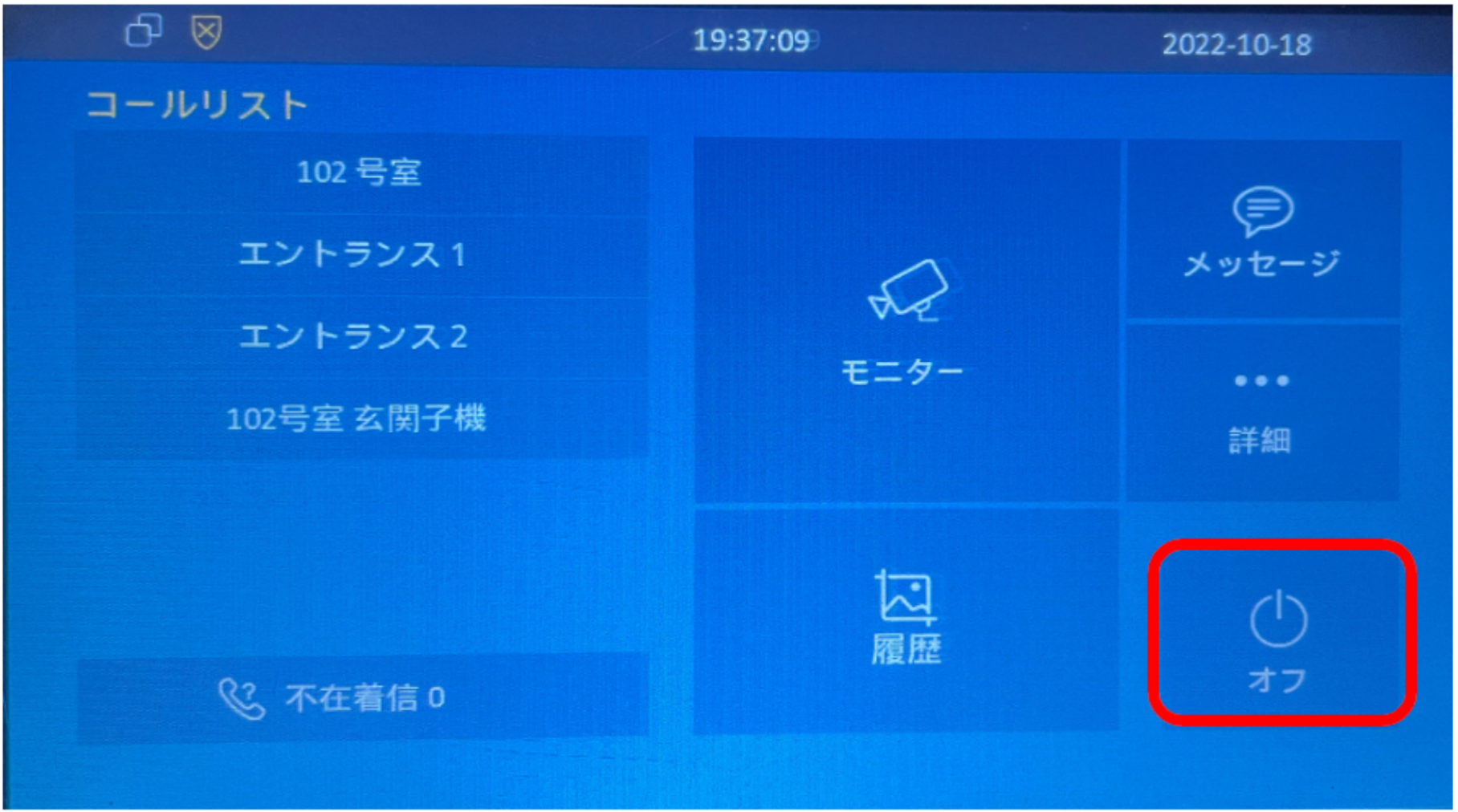 画面右下の「オフ」をタップすることで、ディスプレイが消灯します。