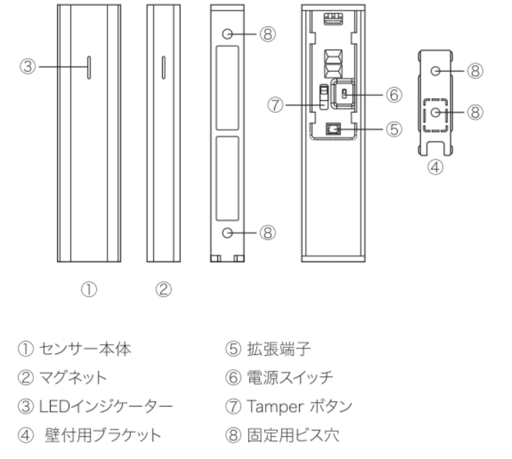 ドア/窓の開閉検知を行うセンサーデバイスです。センサー本体とマグネットの近接により開閉状態を検知します。