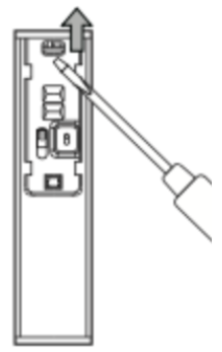 ※下記画像ではLEDが上側になっていますので、上方向にスライドさせます。②フロントカバーの爪を細いマイナスドライバーで押し広げて、フロントカバーを外してください。
