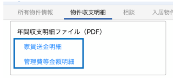 年間収支明細が作成・公開されると、物件収支明細の画面上部にリンクが表示されます。