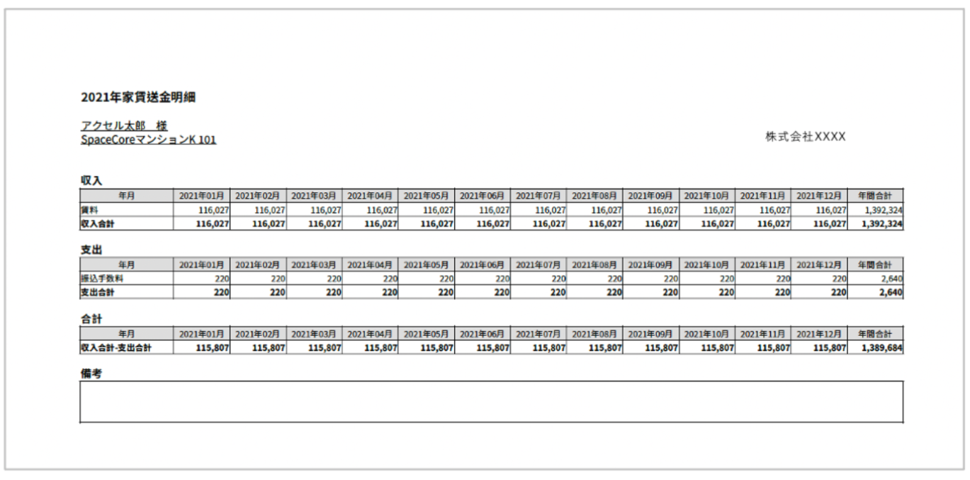 物件収支明細能は、オーナー様が所有されている物件について、月次・年次の収支明細をご確認いただける機能です。