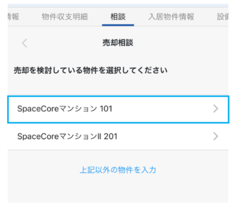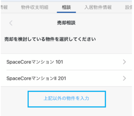 ご利用になるには、画面上部の[マイページ]>[相談]タブをタップし、売却相談・賃貸管理相談のいずれかをタップしてください。