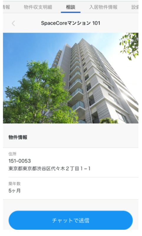 ③物件の情報が表示されます。[チャットで送信]ボタンをタップすると、物件の情報が管理会社に送信されます。