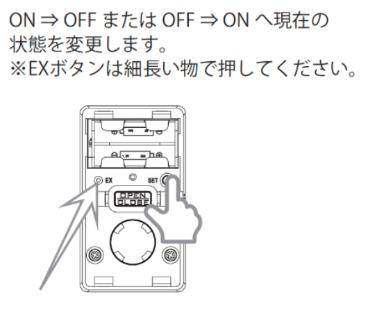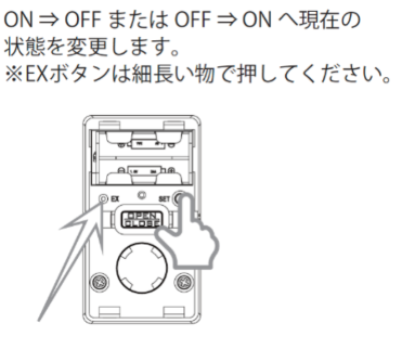 EXボタンとSETボタンを同時に3秒間押します。設定が終了すると、現在の設定状態に応じて「通信帯域オン」または「通信帯域オフ」のアナウンスが流れます。
