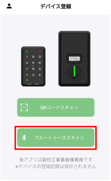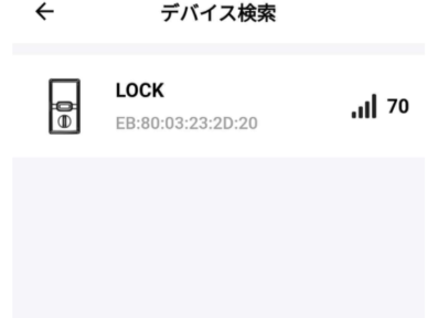 ※LOCKが複数表示されている場合は、LOCK Xインボディの電池収納部に貼ってあるQRコードが記載してあるシールのMACアドレスと同一のアドレスが表示されているLOCKを選択してください。