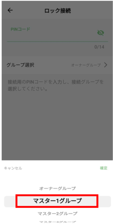 7. グループ選択でマスター1グループを選択し、確定を押します。