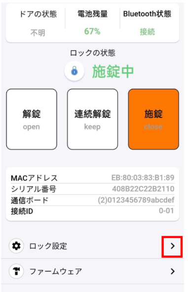 9. ロックの操作・設定画面へ遷移するので、ロック設定をタップします。