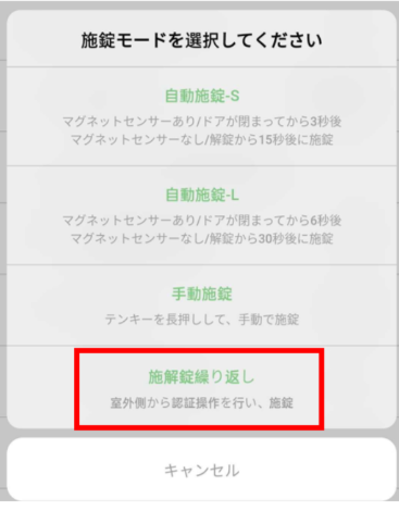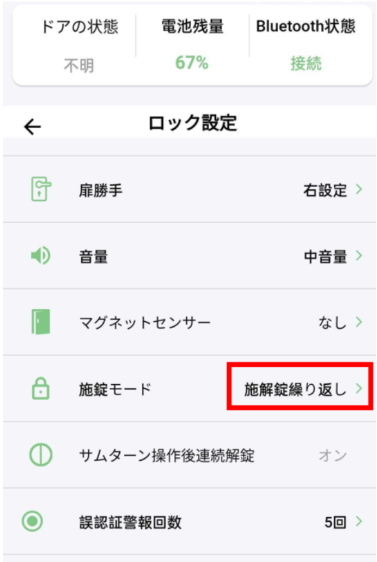 12. 施錠モードが施解錠繰り返しになったことを確認します。