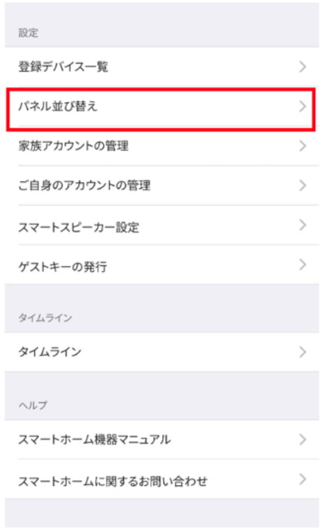 2. スマートホームメニューの下方にある「パネル並び変え」をタップします。