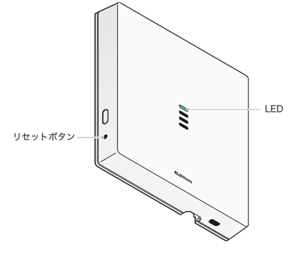 LED 解説 ●緑点灯 正常に接続されている状態です。 ◎緑点滅 室内親機がAPモードになっています。再度親機のAPモードボタンを短押していただくと正常に接続されます。 ●赤点灯 玄関子機と室内親機間で通信異常が発生しています。玄関子機と室内親機をつなぐケーブルの抜けや断線などの可能性がありますので、サポート窓口へお問い合わせください。 ◎赤点滅 室内親機がネットワークに接続できていない状態です。緑点灯にかわるまで、しばらくお待ちいただき、改善なき場合には、Wi-Fi再設定をお試しください。 ●消灯 電源が入っていない状態です。 Nasta Interphone ALが設置された部屋からログアウトしているのに端末に通知が来続ける