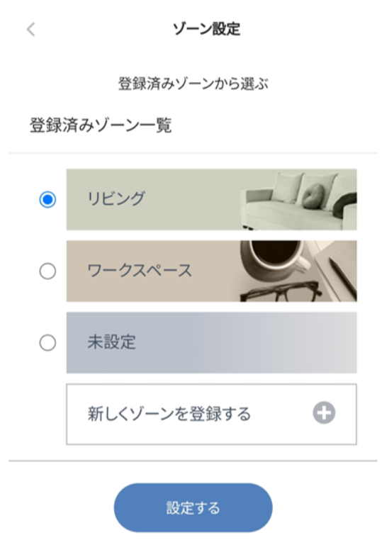 ※ゾーンを設定しておらず、このままゾーンを選択しない場合は ゾーン設定しない をタップしてください。