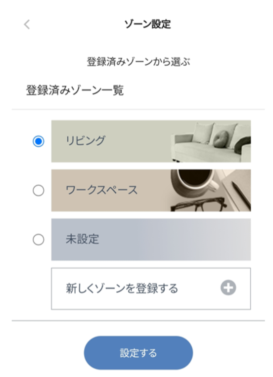 ※ゾーンを設定しておらず、このままゾーンを選択しない場合は ゾーン設定しない をタップしてください。