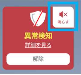 異常を検知すると、サイレン設定で設定した長さ/音量でサイレンが鳴ります。アプリからは、サイレンを停止したり、再度鳴らすことができます。