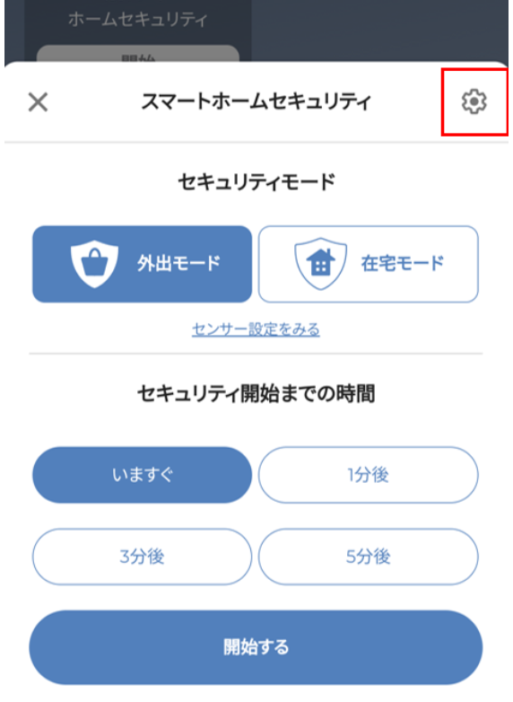 1. セキュリティパネルの[開始]ボタンをタップします。