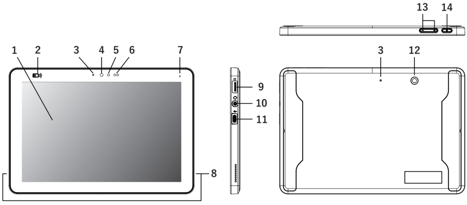 ⑬音量ボタン ⑭電源ボタン