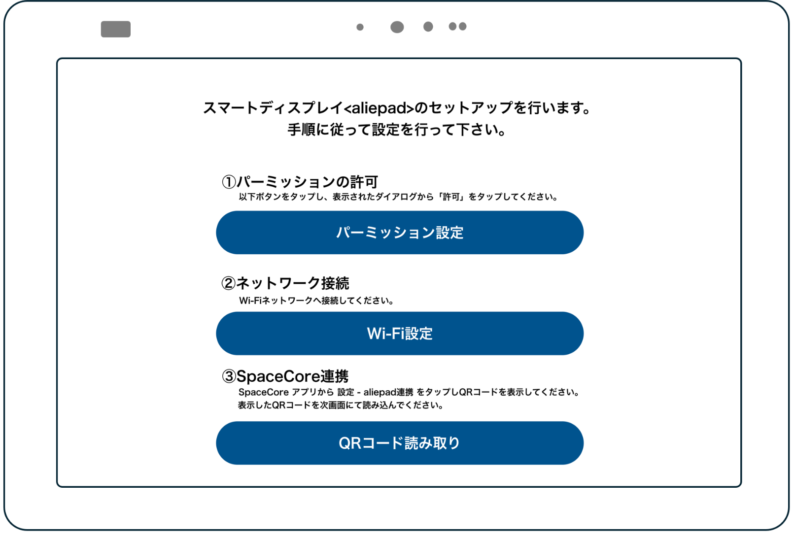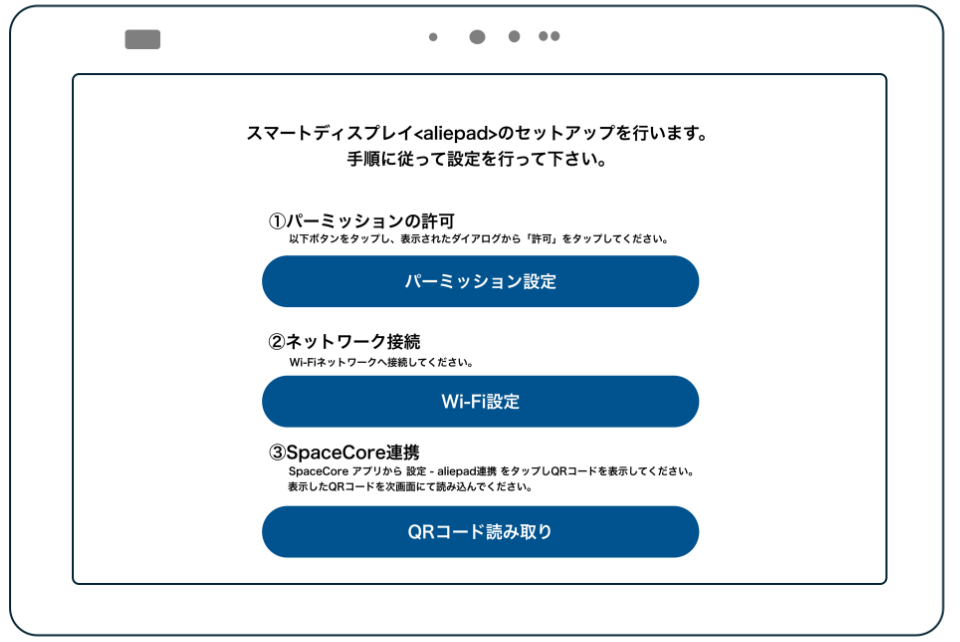 ※aliepad起動時、ログイン操作の際に、スマートフォンでのSpaceCoreアプリ操作が必要となります。