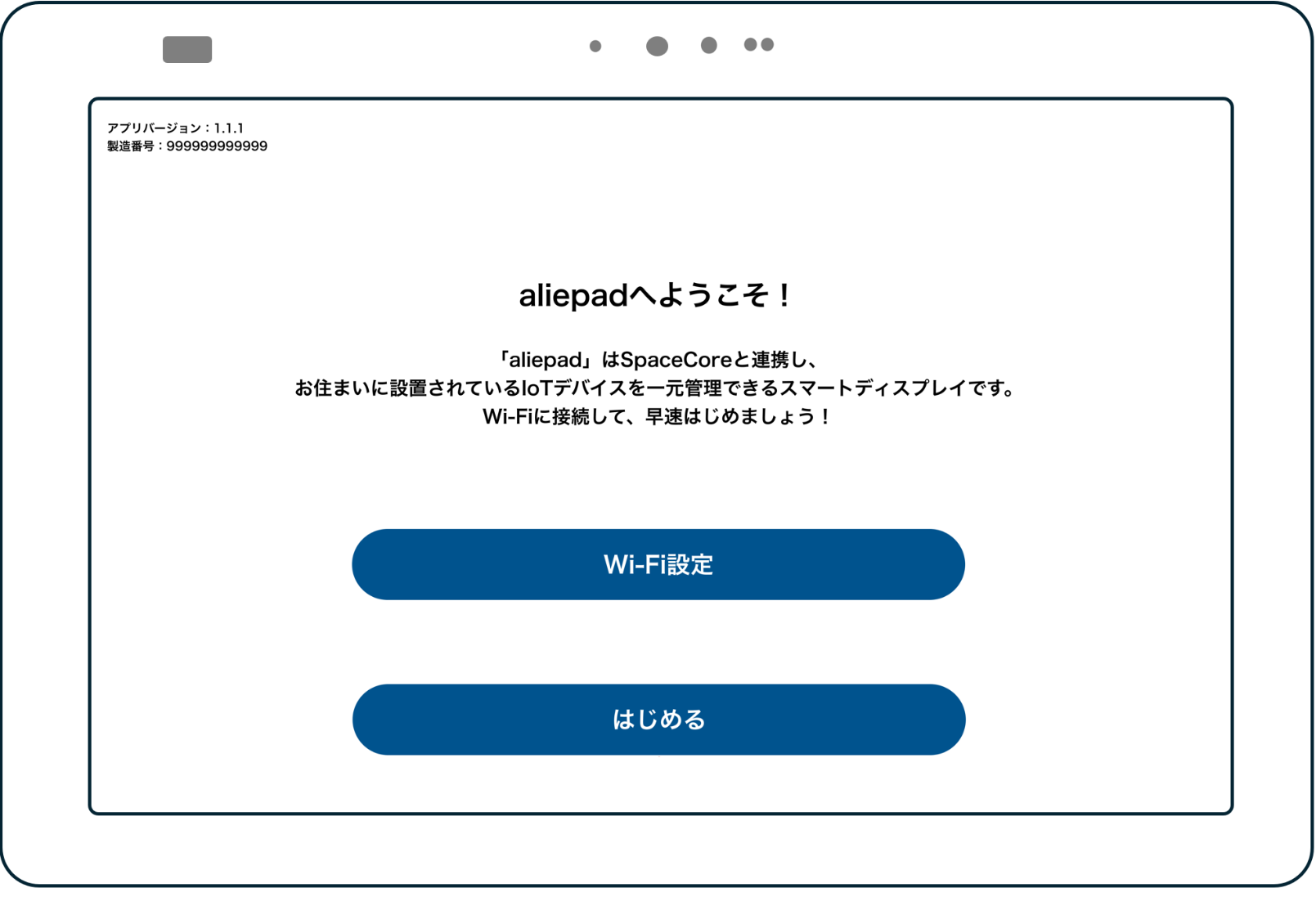 あらかじめ、SpaceCoreアプリにて、aliepadを連携させたいアカウント(電話番号)でアプリ認証を行ったスマートフォンをお手元にご準備の上、以下の操作にお進みください。