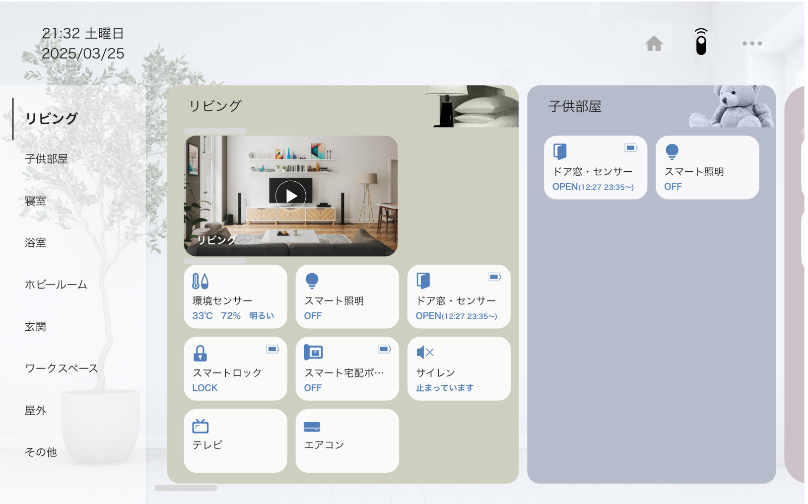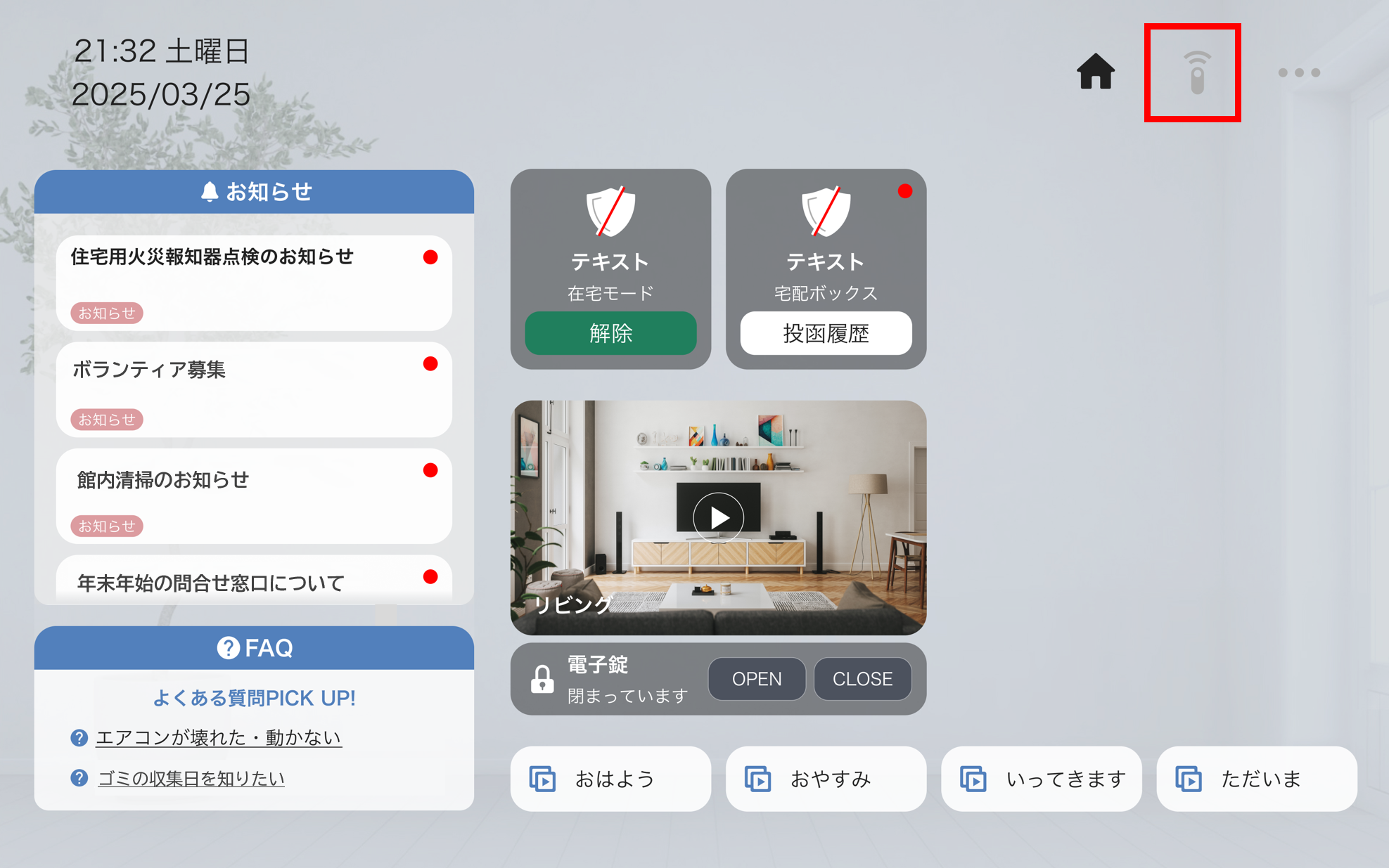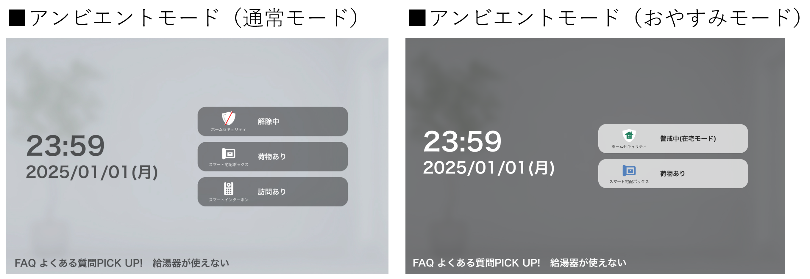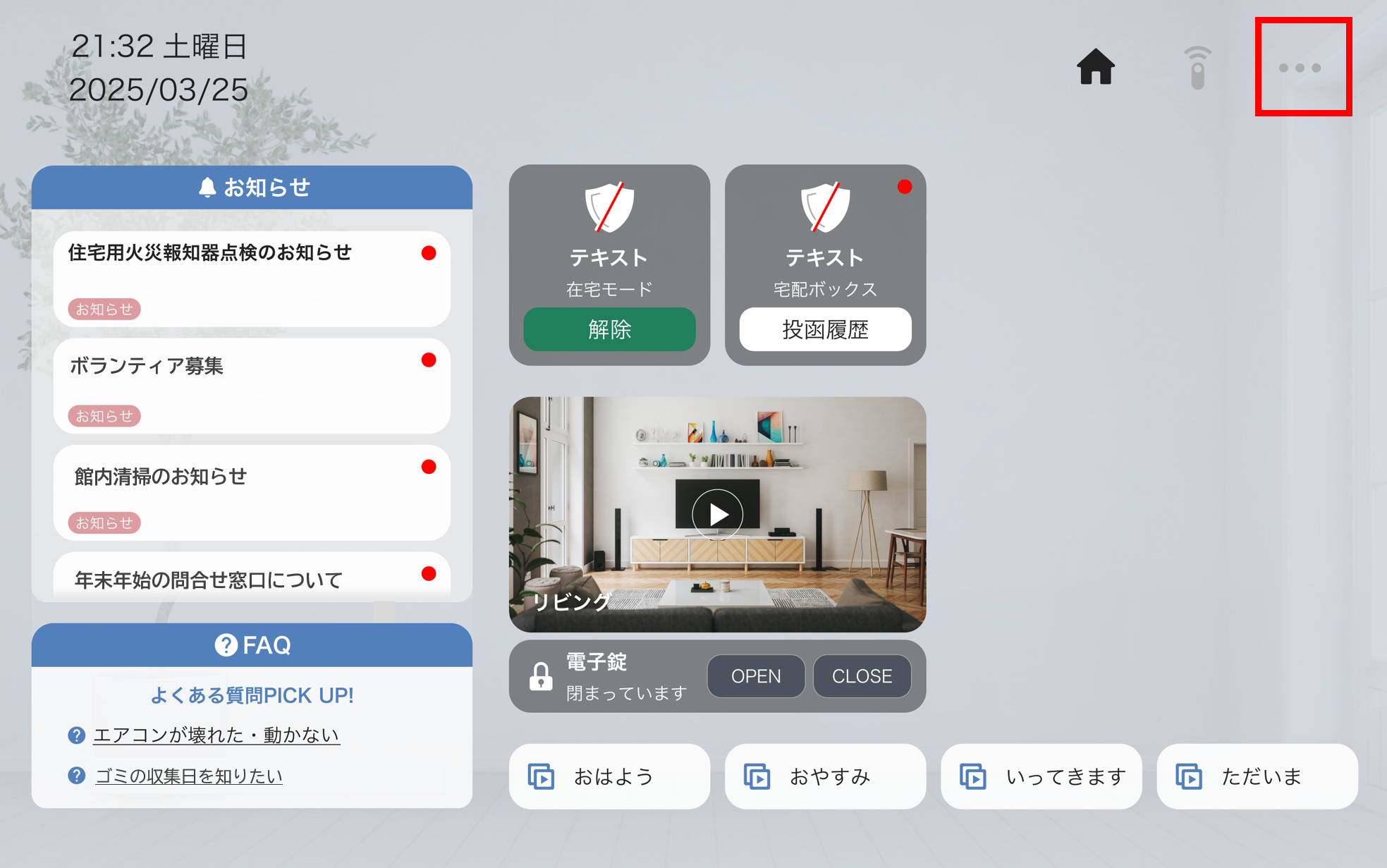 また、スマート宅配ボックス・セキュリティ機能が導入されている物件ではそれらのパネルも表示されます。