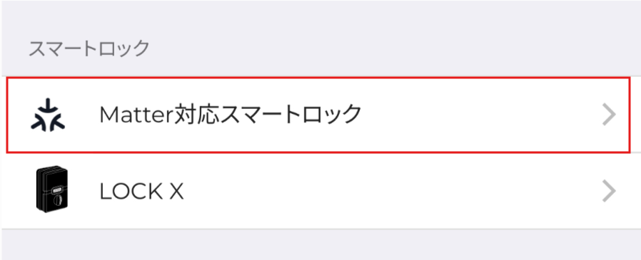 3. 画面を下にスクロールし、スマートロックの「Matter対応スマートロック」をタップしてください。