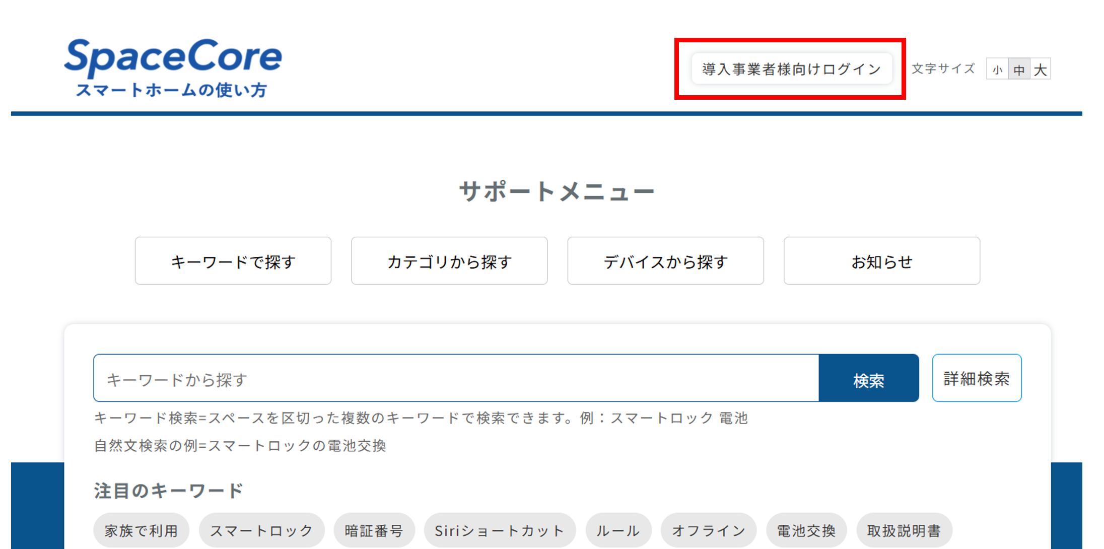 管理画面や設置業務に関する内容などは、本サイト上部「導入事業者様向けログイン」ボタンより